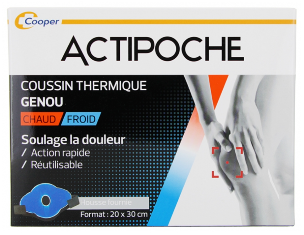 Le coussin thermique ACTIPOCHE Genou, de format 16 x 25 cm, a été spécialement étudié pour s'adapter au genou. Il est donc plus particulièrement adapté pour les sportifs, après une opération chirurgicale ou pour soulager les douleurs musculaires ou articulaires liées à des courbatures ou de l'arthrose.