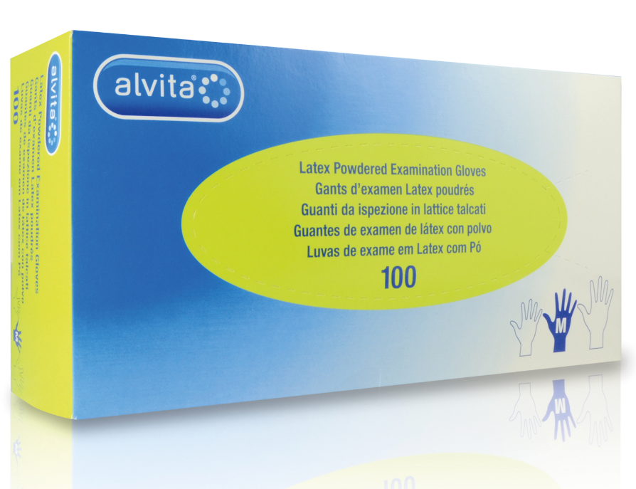 Les gants latex poudrés Alvita sont conçus pour garantir l'hygiène et protéger le patient lors des examens médicaux. Ces gants non stériles sont en latex de caoutchouc naturel. Ils sont ambidextres, jetables et à bords roulés pour éviter les déchirements. Ils sont disponibles en 3 tailles : petits, moyens et grands.
