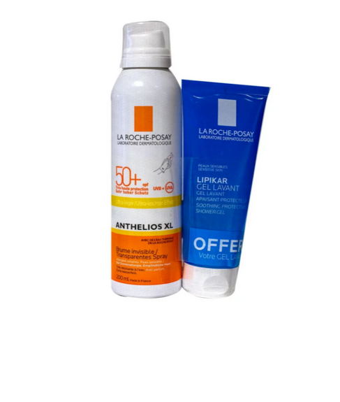 La brume fraîche invisible Anthelios La Roche-Posay ASPF 50+ est une très haute protection solaire spécialement conçue pour les peaux sensibles sujettes aux intolérances solaires. Elle protège votre peau des UVA et UVB. Le gel lavant apaisant protecteur Lipikar La Roche-Posay offert est un soin recommandé pour toute la famille qui nettoie en douceur et protège les peaux sensibles.