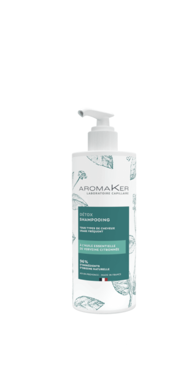 Le Shampooing Détox 500ml AromaKer à usage quotidien régule l’excès de sébum, détoxifie et assainit le cuir chevelu ainsi que la fibre capillaire. La texture du shampooing et son délicat parfum citronné laissent une sensation de fraîcheur sur le cuir chevelu.