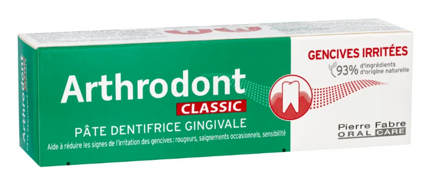 Les gencives irritées, souvent marquées par des rougeurs ou des saignements ponctuels, peuvent entraîner un véritable inconfort. La formule d'Arthrodont Classic pâte dentifrice gingivale, enrichie en acide glycyrrhétinique extrait des racines de réglisse, offre une action apaisante tout en renforçant les gencives.