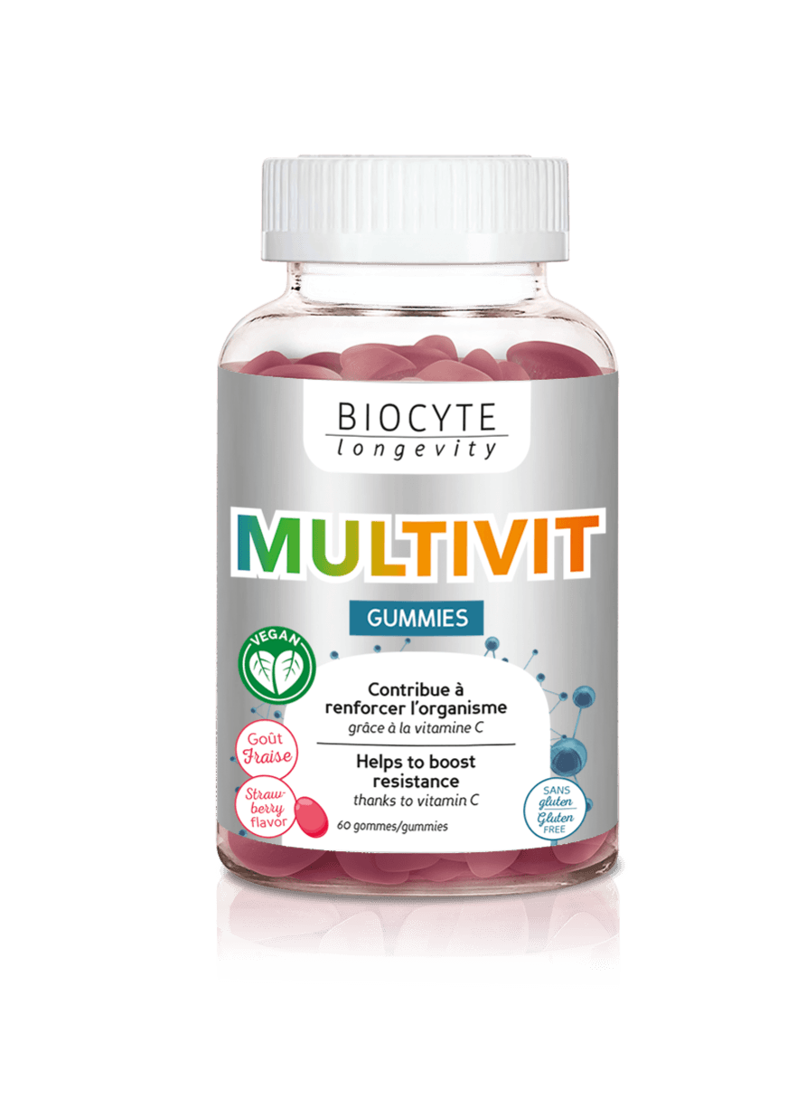 Multivit Gummies est un complément alimentaire, sous forme de délicieuses gommes à mâcher au bon goût fraise, formulé avec 9 vitamines et 1 minéral, pour soutenir les apports quotidiens en vitamines et minéraux, micronutriments indispensables au bon fonctionnement du corps, ils doivent être apportés quotidiennement à travers une alimentation équilibrée.