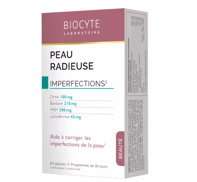 Biocyte Peau Radieuse 60 Gélules est un complément alimentaire à la formule unique associant :
