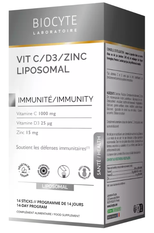 Biocyte Vit C/D3/Zinc Liposomal Immunité 14 sticks