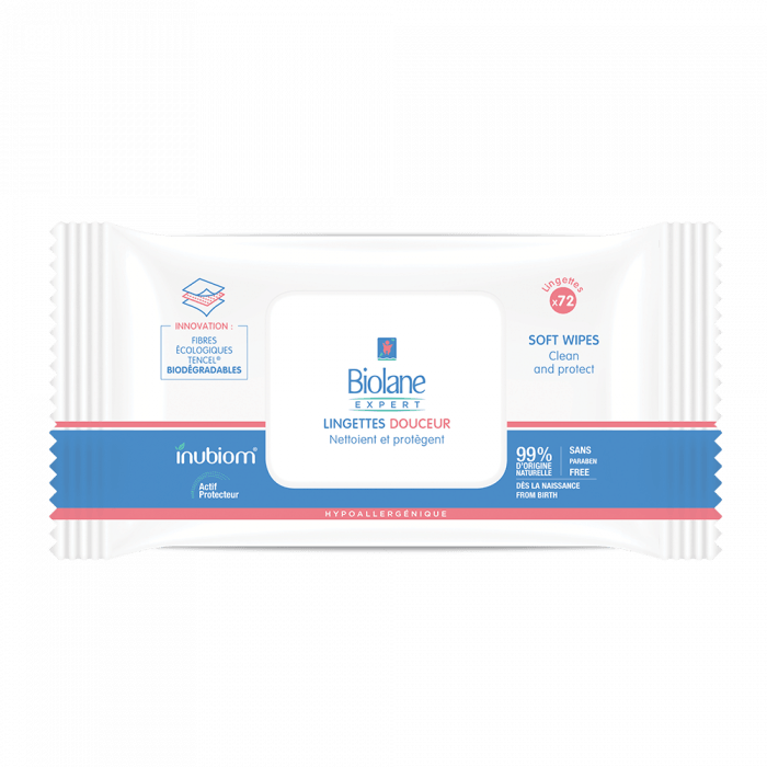 Les Lingettes Douceur s'utilisent à chaque change et à tout moment de la journée sur le siège, le corps ou le visage du bébé.