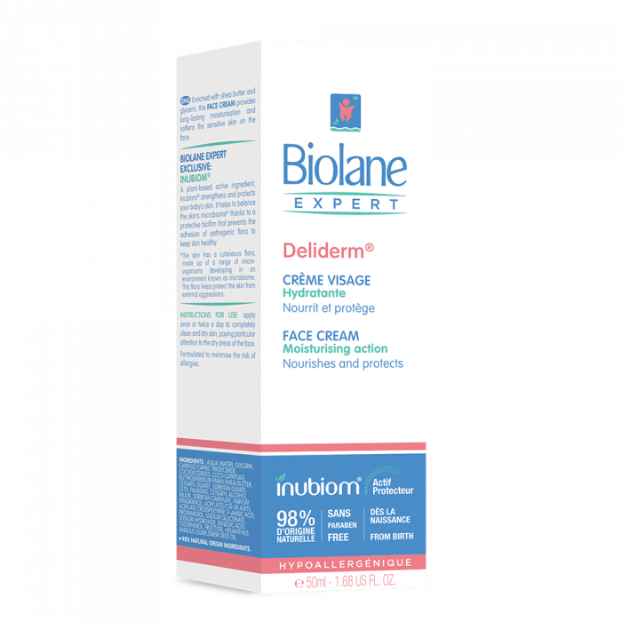 Deliderm ® crème visage laisse la peau de bébé hydratée et apaisée dès la première application.