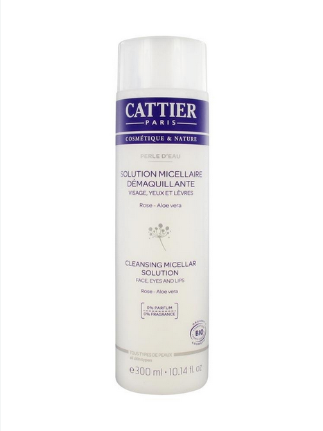 La Solution micellaire démaquillante Perle d’Eau Cattier, formulée sans alcool et sans parfum, élimine délicatement toutes les impuretés et le maquillage du visage, des yeux et des lèvres. Grâce à sa richesse en extrait de rose bio, recherchée pour ses vertus apaisantes, astringentes et hydratantes et en aloe vera bio, adoucissant, régénérant et protecteur, sa formule haute tolérance rafraîchit, apaise et purifie la peau. Sa texture ultra-légère associe la fraîcheur tonifiante de l’eau à l’efficacité nettoyante des micelles