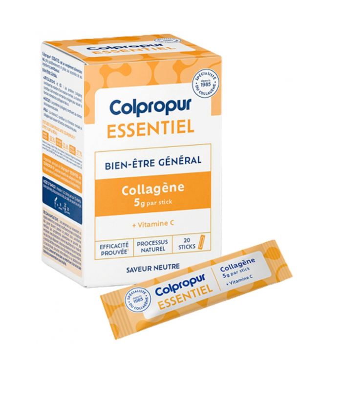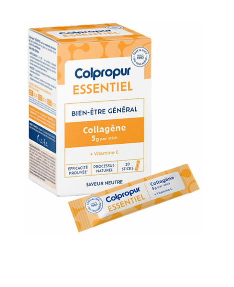 Colpropur Essentiel Bien-Être Général Collagène 5 g 20 Sticks offre une solution pratique et efficace pour maintenir la santé de la peau, des os et des cartilages.