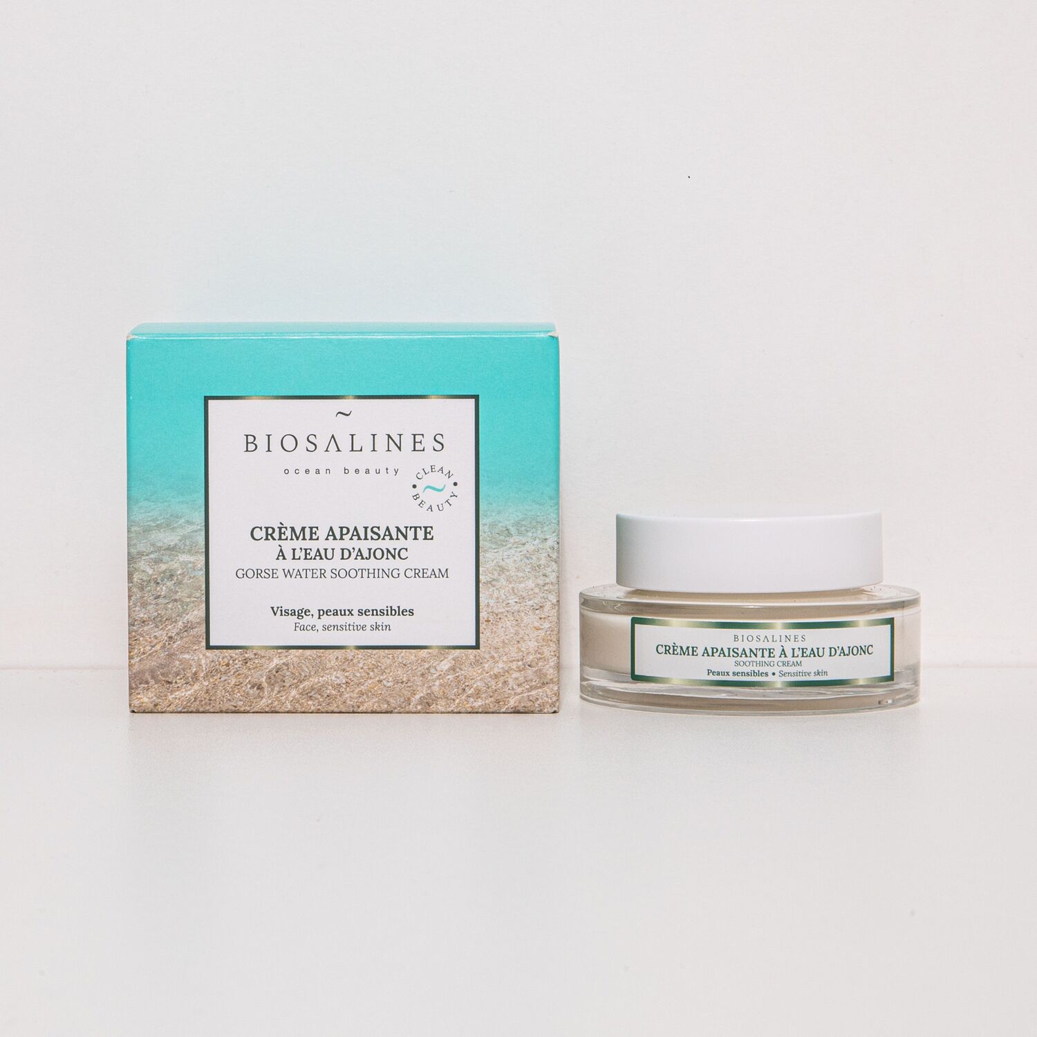 Biosalines a souhaité apporter une solution aux peaux qui tiraillent, picotent ou démangent. La crème apaisante à l'eau d'ajonc offre un effet 100% apaisant pour réconforter les peaux les plus réactives. D'une douceur incroyable, cette crème 100% apaisante a été formulée à base d'eau de source marine et d'eau d'ajonc.L'eau de source marine est une eau douce riche en oligo éléments, véritable source d'hydratation et de vitalité pour la peau.L'eau d'ajonc atténue les rougeurs et présente des vertus apaisantes et calmantes très appréciées des peaux réactives.Convient aux peaux sensibles, sans parfum.Testé sous contrôle dermatologique.*Test d'usage réalisé sur 16 personnes ayant la peau du visage sensible pendant 2 semaines avec une application matin et soir.**Test de cornéométrie sur un panel de 10 femmes, mesure du taux d'hydratation à 1 heure après l'application due la crème.