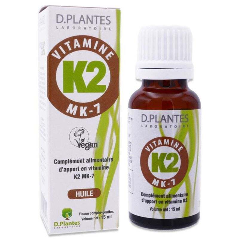 DescriptionUne révolution végétale pour votre santé osseuse et cardiovasculaireDécouvrez D. Plantes Vita K2 MK-7, un complément alimentaire innovant qui allie nature et science pour soutenir votre bien-être au quotidien. Sous forme dhuile dolive extra vierge, ce produit vegan apporte une dose optimale de vitamine K2 MK-7, une forme hautement biodisponible et dorigine 100 % végétale. Issu dun processus de fermentation naturelle, il se distingue par sa pureté et son efficacité, sans compromis sur la qualité. Un allié pour des os solides et une circulation sanguine équilibréeLa vitamine K2 MK-7 joue un rôle clé dans la fixation du calcium sur les os, contribuant ainsi à maintenir une ossature normale. Elle participe également à une coagulation sanguine saine, un équilibre essentiel pour le système cardiovasculaire. Avec seulement 3 gouttes par jour, vous bénéficiez de 90 ?g de vitamine K2, soit 120 % des apports de référence (AR), pour une action ciblée et durable. Pratique, naturel et conçu pour durerCe flacon de 15 ml contient environ 340 gouttes, soit plus de 110 jours dutilisation, pour un format à la fois économique et facile à intégrer dans votre routine. Sans conservateurs et formulé avec une huile dolive extra vierge extraite à froid, ce complément préserve toute sa richesse nutritionnelle. Sa biodisponibilité optimale garantit une assimilation maximale par lorganisme, tandis que des contrôles rigoureux en microbiologie et physico-chimie assurent une qualité irréprochable. Un engagement pour une consommation responsableD. Plantes Vita K2 MK-7 est vegan, sans gluten et sans additifs superflus. Produit à partir de Bacillus subtilis natto, une bactérie utilisée depuis des siècles dans la tradition japonaise, il incarne une approche respectueuse de lenvironnement et de votre santé. Pour préserver ses propriétés, conservez-le à labri de la lumière et du froid, sans le réfrigérer. D. Plantes est une marque engagée dans le développement de compléments alimentaires naturels, alliant innovation scientifique et respect des traditions. Spécialisée dans les solutions vegan et biodisponibles, elle mise sur des ingrédients dorigine végétale, soigneusement sélectionnés pour leur efficacité et leur pureté. Chaque produit est conçu pour répondre aux besoins spécifiques de lorganisme, tout en garantissant une qualité optimale grâce à des contrôles rigoureux. Avec D. Plantes, prenez soin de votre santé au naturel.Liste des avantages du produitDécouvrez les atouts de D. Plantes Vita K2 MK-7 pour votre santé : Soutient la coagulation sanguine Favorise une ossature solide Formule 100 % végétale et végane Biodisponibilité optimale naturelle Sans conservateurs ajoutés Pratique avec compte-gouttes intégréConseils d'utilisationPour une utilisation optimale de D. Plantes Vita K2 MK-7, versez simplement 3 gouttes par jour directement sous la langue ou dans une boisson froide, de préférence au cours dun repas. Cette posologie quotidienne couvre 120 % des apports de référence en vitamine K2, favorisant ainsi une coagulation sanguine normale et le maintien dune ossature saine. Le flacon, facile à utiliser grâce à son compte-gouttes intégré, se conserve à température ambiante, à labri de la lumière et du froid pour préserver ses propriétés. Avec environ 340 gouttes par flacon, vous disposez dune autonomie denviron 110 jours.CompositionHuile d'olive vierge extra - Vitamine K2 (ménaquinone-7) - Antioxydant : extrait riche en tocophérols (vitamine E) - Peut contenir des traces de SOJA