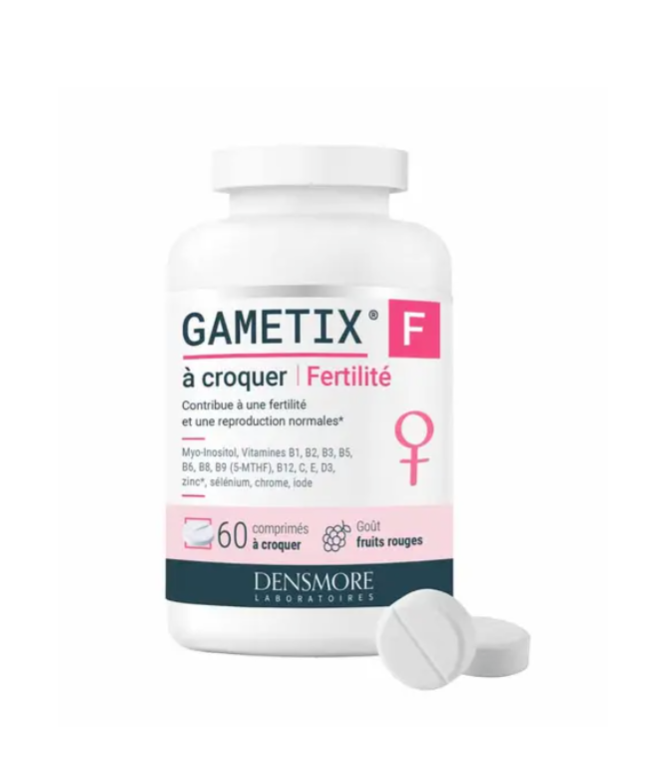 Élaboré par le laboratoire Densmore, Gametix® F à croquer est un complément alimentaire formulé pour accompagner les femmes en désir de grossesse. Grâce à sa nouvelle galénique pratique au goût fruits rouges et sans aspartame, il s’intègre facilement dans votre routine bien-être quotidienne.