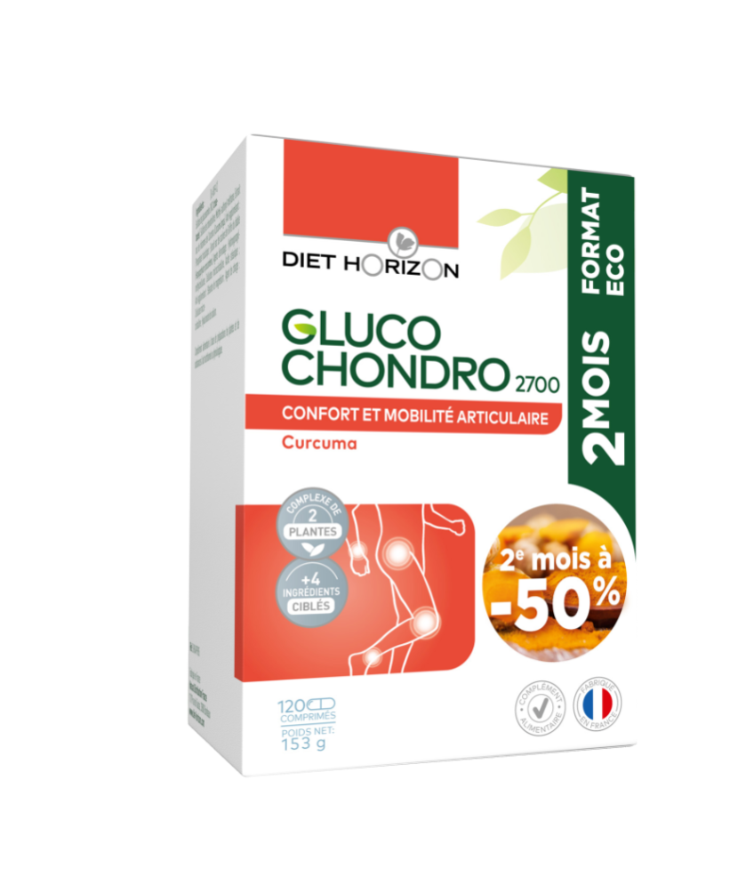 GLUCO CHONDRO 2700 contient également du Curcurma qui contribue au maintien de la santé articulaire ainsi que de l'acide hyaluronique, une substance naturellement présente dans le cartilage.