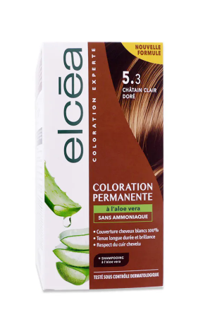 La Coloration Permanente 5.3 Châtain Clair Doré d’Elcéa révèle la beauté de vos cheveux tout en leur offrant un soin en profondeur.