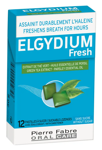 Isomalt, Extrait de thé vert (20 mg), Arômes, Édulcorant : Acésulfame de potassium ; Huile essentielle de persil (1 mg), Acidifiant : Acide citrique ; Colorant : E 141.