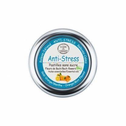 Pastilles sans sucre anti-stress Bio d'Élixirs & Co, recommandé pour ceux qui vivent sous tension ou sous pression, en hyperactivité. Les pastilles sans sucre ajouté aident à retrouver la tranquillité et la sérénité. Une combinaison exclusive de fleurs de Bach et d’huiles essentielles d’orange douce et de mandarine rouge. Ces savoureuses pastilles à la texture tendre et au goût orange et menthe vous apporteront calme et réconfort dans les moments de stress et d'hyperactivité. Elles vous apaiseront dans les moments de tensions personnelles et professionnelles.