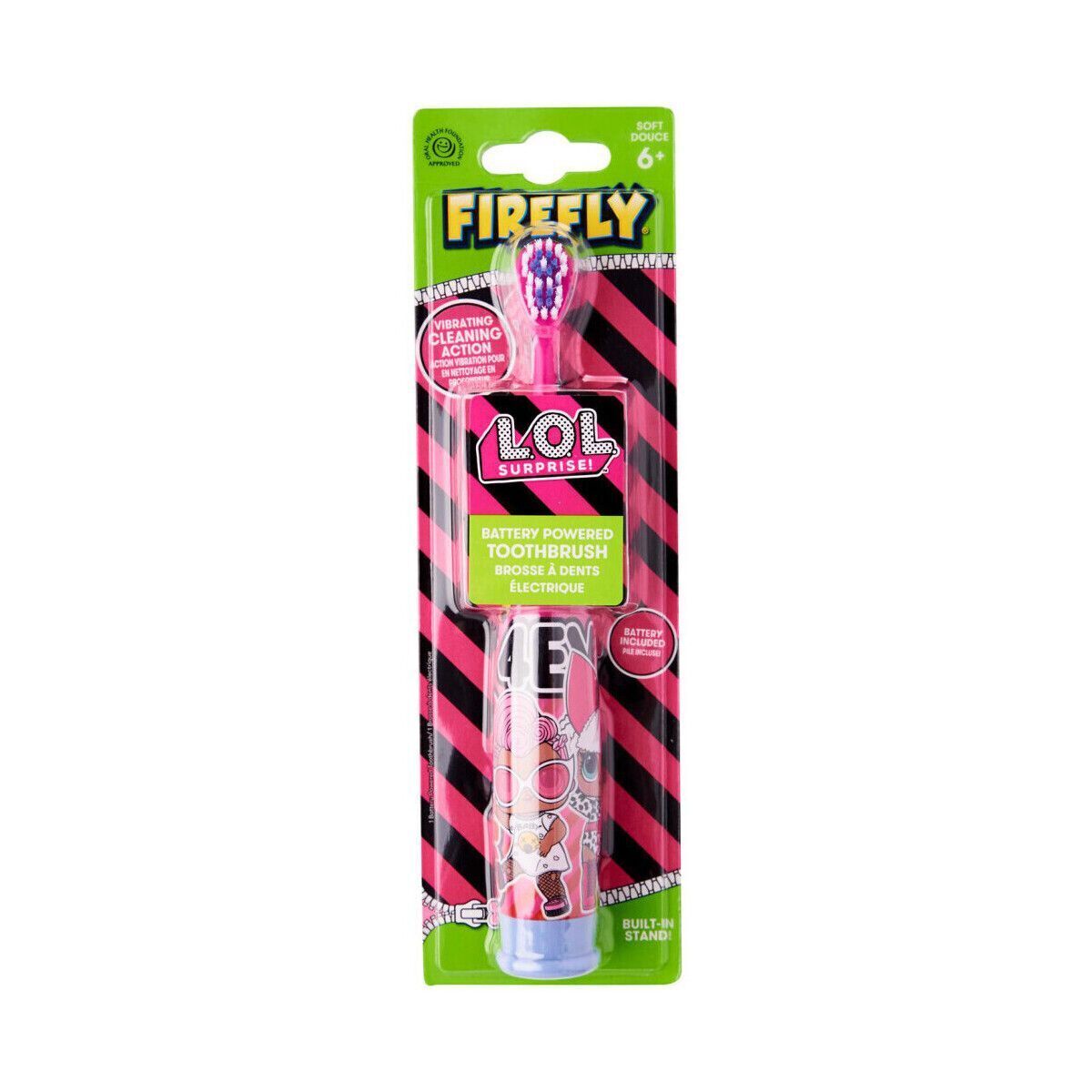 La brosse à dents électrique Firefly Turbo Max L.O.L. Surprise offre un nettoyage vibrant efficace pour maintenir les dents de vos tout-petits impeccables. Rapidité, efficacité et plaisir réunis dans cette brosse à piles, idéale pour les enfants de plus de 6 ans. Offrez à vos tout-petits une expérience de brossage exceptionnelle avec la brosse à dents électrique Firefly Turbo Max L.O.L. Surprise. Dotée d'une action vibrante, cette brosse à piles garantit un nettoyage en profondeur de l'émail des dents tout en stimulant délicatement les gencives. Les mouvements puissants de la brosse éliminent efficacement les résidus alimentaires et les colorations causées par les boissons et les friandises.Le brossage des dents devient non seulement facile et rapide, mais aussi amusant, encourageant ainsi de bonnes habitudes d'hygiène bucco-dentaire dès le plus jeune âge. La Turbo Max L.O.L. Surprise est spécialement conçue pour les enfants de plus de 6 ans, offrant une propreté supérieure à celle d'une brosse ordinaire. Vos enfants adoreront la sensation de propreté et de fraîcheur après chaque utilisation, tout en développant une routine de soins dentaires régulière. Optez pour le meilleur en matière de soins bucco-dentaires pour vos tout-petits avec la brosse à dents électrique Firefly Turbo Max L.O.L. Surprise, alliant performance, praticité et plaisir.