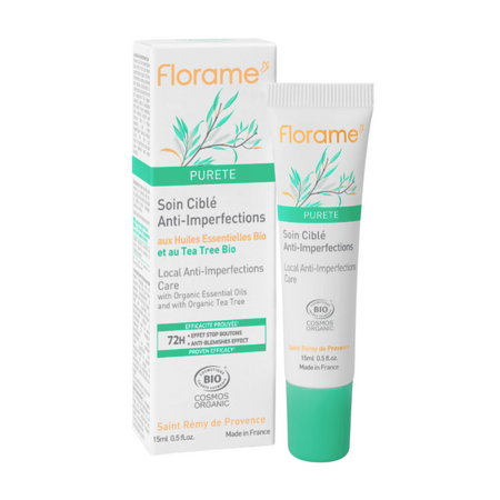 Le Soin Ciblé Anti-Imperfections Florame Certifié Bio, à la texture gel frais concentré en Hydrolat de Tea Tree Bio, dédie sa double action purifiante et perfectrice de la peau pour réduire visiblement les imperfections en 72h.