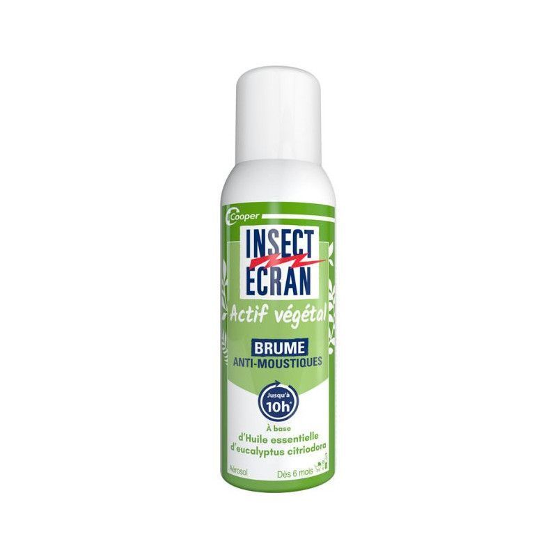 Brume anti-moustiques actif végétal Insect Ecran des Laboratoires Cooper, au fini, toucher sec, il protège toute la famille jusqu'à 10h contre les moustiques.