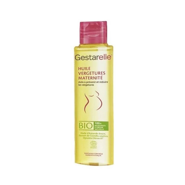 Laboratoires IPRAD Gestarelle Huile Vergetures Maternité Bio 100 ml est une huile composée d'huile d'amande douce, d'extrait de centella asiatica, d'Opuntia Oléoactif® et de vitamine E, spécifiquement formulée pour aider à prévenir et réduire les vergetures durant la maternité grâce à ses propriétés :