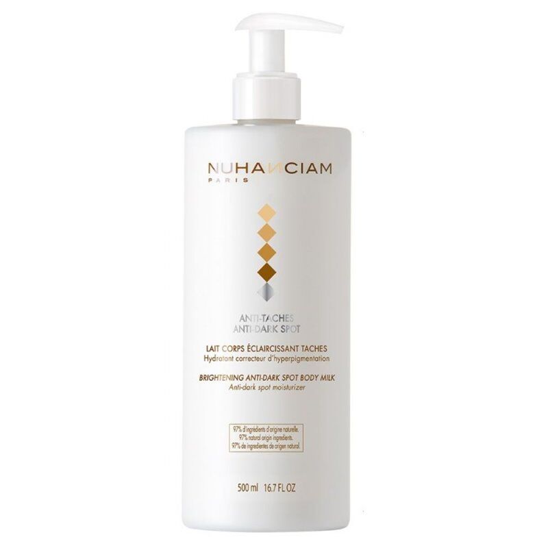 Pour la clarté et la beauté du corps, ce soin complet corrige les taches et éclaircit les zones sombres tout en maintenant lhydratation* et la souplesse de la peau.EXTRAIT DALGUE ARC-EN-CIEL Concentré cellulaire aux propriétés éclaircissantes. HUILE DE CARTHAME Nourrissante. BEURRE DE KARITÉ Réparateur. GLYCÉRINE Hydratante et adoucissante. Extrêmement sensorielle, la texture fond dans la peau. Ni grasse, ni collante, elle permet de shabiller sans attendre. Appliquer tous les jours sur lensemble du corps en insistant sur les zones hyperpigmentées. AQUA (WATER), GLYCERIN, CARTHAMUS TINCTORIUS (SAFFLOWER) SEED OIL, CAPRYLIC/CAPRIC TRIGLYCERIDE, CETEARYL ALCOHOL, BUTYROSPERMUM PARKII (SHEA) BUTTER, PEG-20 STEARATE, POTASSIUM CETYL PHOSPHATE, HYDROXYACETOPHENONE, PARFUM (FRAGRANCE), DIMETHICONE, ACRYLATES/C10-30 ALKYL ACRYLATE CROSSPOLYMER, 1,2-HEXANEDIOL, CAPRYLYL GLYCOL, ARGININE, TOCOPHEROL, GLYCINE SOJA (SOYBEAN) OIL, CYSTOSEIRA TAMARISCIFOLIA EXTRACT, LINALYL ACETATE, TERPINEOL, GERANYL ACETATE, POGOSTEMON CABLIN OIL, JUNIPERUS VIRGINIANA OIL, BENZALDEHYDE, BETA-CARYOPHYLLENE.