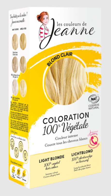 La Coloration végétale Blond clair de la marque Les Couleurs de Jeanne est composée de poudre 100% pure et végétale.