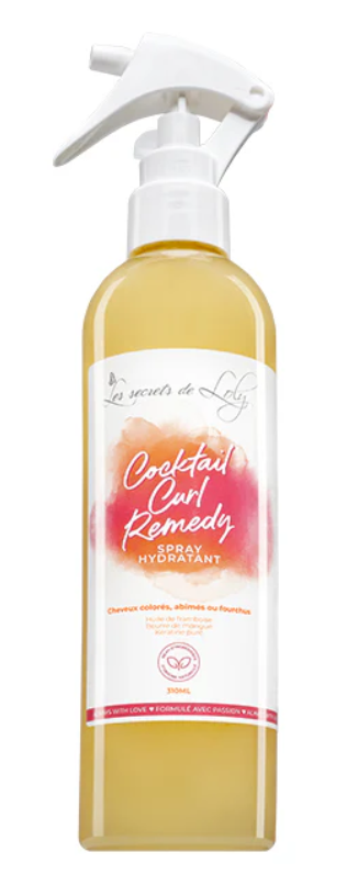 Formulé à 98,4 % d’origine végétale, le Cocktail Curl Remedy est le produit le plus technique de la gamme. Véritable cocktail hydratant et réparateur à base de beurre de mangue, de kératine pure, d’huile végétale de framboise et d’aloe vera, ce spray permet de sceller les fourches afin de préserver vos longueurs tout en les hydratant. Il répare instantanément les pointes abîmées et permet d’espacer la coupe grâce au procédé d’encapsulation. Il convient aux cheveux naturels, colorés, ou en transition. Il protège également les cheveux des rayons UV.