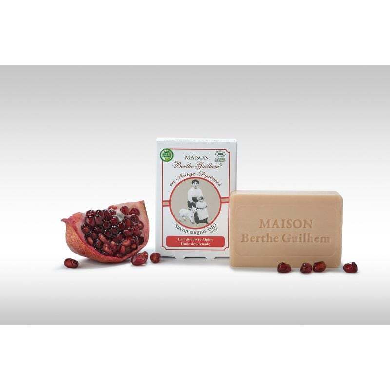 DescriptionUn savon bio qui chouchoute votre peau comme une caresse naturelleDécouvrez le Savon au Lait de Chèvre et Huile de Grenade de Maison Berthe Guilhem, une alliance rare entre douceur alpine et puissance régénérante. Ce savon surgras, certifié bio et sans huile de palme, est une invitation à prendre soin de sa peau avec des ingrédients d'exception : du lait frais de chèvre alpine, riche en acides gras nourrissants, et de l'huile de grenade bio, aux vertus antioxydantes et apaisantes. Un soin artisanal qui transforme votre routine en un moment de pure indulgence. Pour les peaux en quête de réconfort et d'éclatSpécialement formulé pour les peaux sensibles, sèches ou irritées, ce savon de 100 g offre une hydratation intense tout en respectant l'équilibre naturel de votre épiderme. Ses actifs naturels, comme les acides caprique, caproïque et caprylique du lait de chèvre, aident à restaurer le film hydrolipidique de la peau, tandis que l'huile de grenade, issue de grenadiers cultivés traditionnellement en Asie occidentale, apporte ses propriétés régénérantes. Un soin polyvalent, adapté au visage, au corps et même au bain des bébés et des enfants. Une expérience sensorielle unique, entre douceur et gourmandisePlongez dans une fragrance fruitée et acidulée, où se mêlent des notes légères de fruits rouges pour un sillage à la fois frais et réconfortant. Fabriqué dans un laboratoire familial en Ariège, ce savon artisanal allie savoir-faire traditionnel et ingrédients d'origine naturelle, pour une peau visiblement plus douce, apaisée et revitalisée. Un geste beauté simple, mais profondément efficace, qui fait du bien à votre peau comme à la planète. Maison Berthe Guilhem, c'est l'histoire d'une passion transmise de génération en génération, où chaque savon est conçu comme une uvre d'artisanat. Installée en Ariège, cette marque familiale mise sur des ingrédients bio et locaux pour créer des soins respectueux de la peau et de l'environnement. Leur engagement ? Offrir des produits sains, sans compromis sur la qualité, pour des rituels beauté qui ont du sens.Liste des avantages du produitHydratation intense et durable Apaisant pour peaux sensibles Riche en antioxydants naturels Sans huile de palme certifié Parfum gourmand et fruité Idéal pour toute la familleConseils d'utilisationPour profiter pleinement des bienfaits de ce savon surgras au lait de chèvre et à lhuile de grenade, humidifiez votre peau ou celle de votre bébé, puis faites mousser le savon entre vos mains ou directement sur le corps. Appliquez en massant délicatement pour nettoyer en douceur, sans agresser les peaux sensibles ou sèches. Rincez à leau tiède pour éliminer les résidus tout en laissant la peau hydratée et apaisée. Utilisable quotidiennement sur le visage, le corps ou même pour le bain des enfants, ce savon préserve léquilibre naturel de la peau tout en lui offrant une sensation de confort et de fraîcheur. Évitez le contact avec les yeux et conservez-le dans un endroit sec après utilisation pour prolonger sa durée de vie.CompositionAQUA - SODIUM SUNFLOWERSEEDATE** (Agent nettoyant) - GLYCERIN** (Humectant) - PUNICA GRANATUM SEED OIL* (Huile de grenade : Antioxydant, Apaisant, Régénérant) - KAOLIN (Absorbant) - MONTMORILLONITE (Stabilisant) - SODIUM CHLORIDE (Viscosant) - SODIUM HYDROXIDE (Régulateur de pH) - CITRIC ACID (Régulateur de pH) - PARFUM (FRAGRANCE) (Allergènes : GERANIOL) (* : Ingrédient issu de l'agriculture biologique - ** : Ingrédient d'origine naturelle)