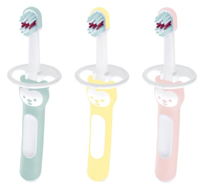 La brosse d’apprentissage MAM Training Brush munie d’un manche ultralong permet aux parents et aux bébés de tenir la brosse en même temps. Les parents peuvent ainsi guider la brosse avec précision et s’assurer que toutes les dents sont bien brossées.