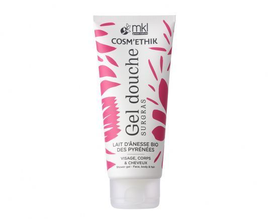 MKL Green Nature Cosm'Ethik Gel Douche Surgras Lait d'Ânesse Bio des Pyrénées 200 ml est un gel douche surgras sans savon qui convient à l'hygiène quotidienne du visage, du corps, des cheveux de toute la famille à partir de l'âge de 3 ans.