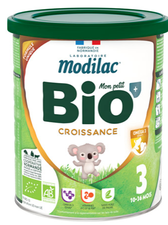 Depuis plus de 35 ans, Le Laboratoire Modilac conçoit des formules infantiles à la pointe de la recherche nutritionnelle pour être toujours au plus proche du lait maternel. En complément d’une alimentation progressivement diversifiée, Modilac Bio+ Croissance répond aux besoins nutritionnels spécifiques* de votre bébé dès 10 mois.