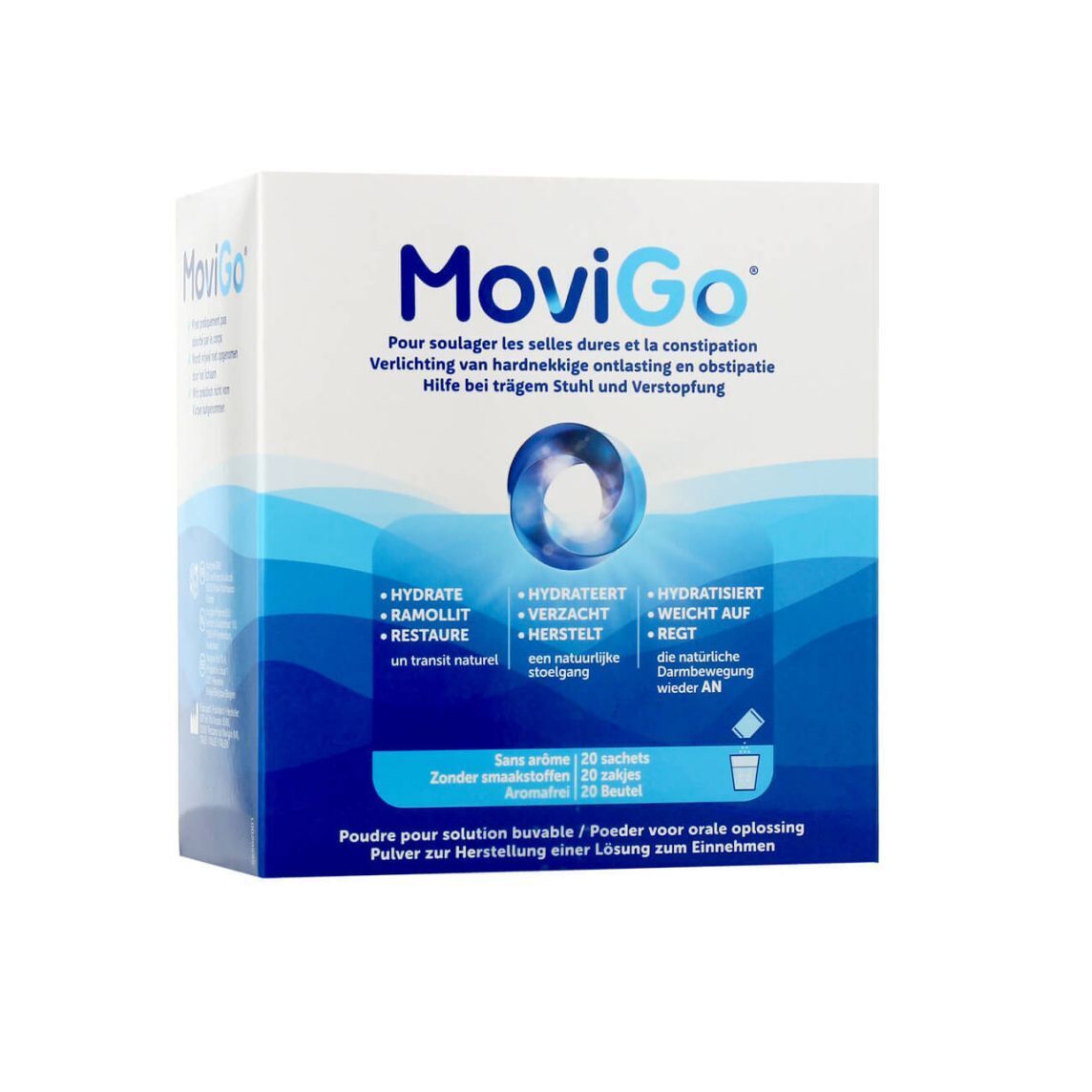 MoviGo se présente sous forme de poudre à dissoudre. Pour la préparation, mélangez le contenu d’un sachet de 10 g avec environ 125 ml d’eau jusqu’à obtention d’une solution homogène.