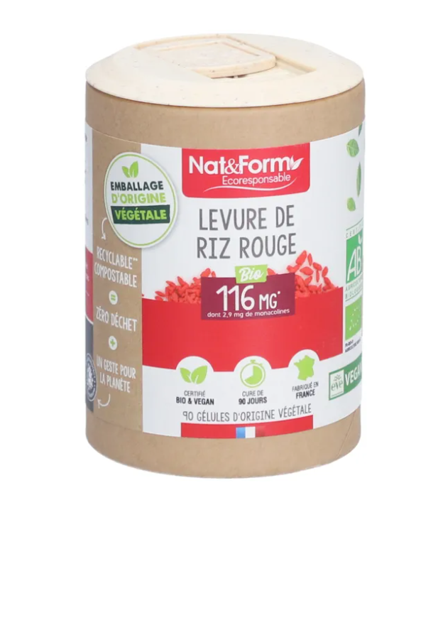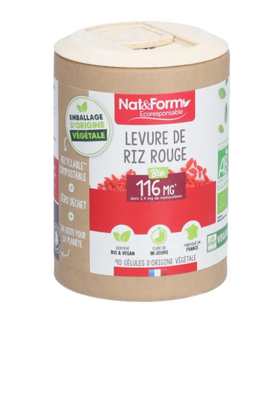 Levure de riz rouge des Laboratoires Nat&Form est un complément alimentaire qui aide à maintenir un niveau stable de cholestérol.