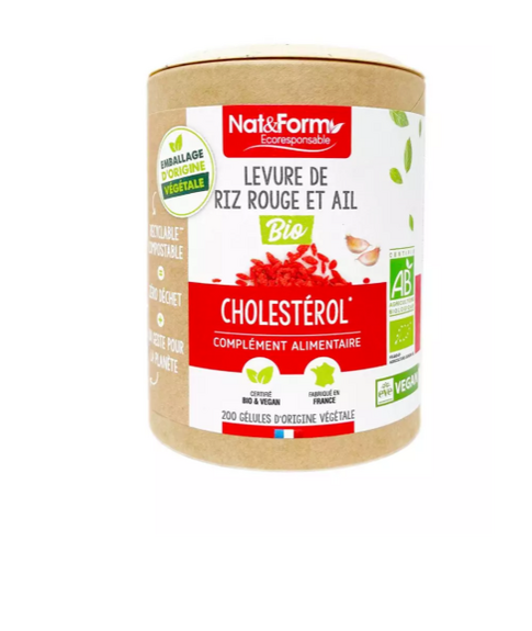 Levure de riz rouge & ail Bio des Laboratoires Nat&Form est un complément alimentaire qui aide à maintenir des taux normaux de cholestérol.