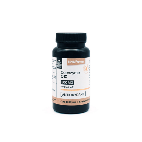 Ingrédients : Coenzyme Q10 (ubiquinone), gélule d’origine végétale, gomme d’acacia (agent de charge), vitamine E (acétate de DL-alpha-tocophéryle).