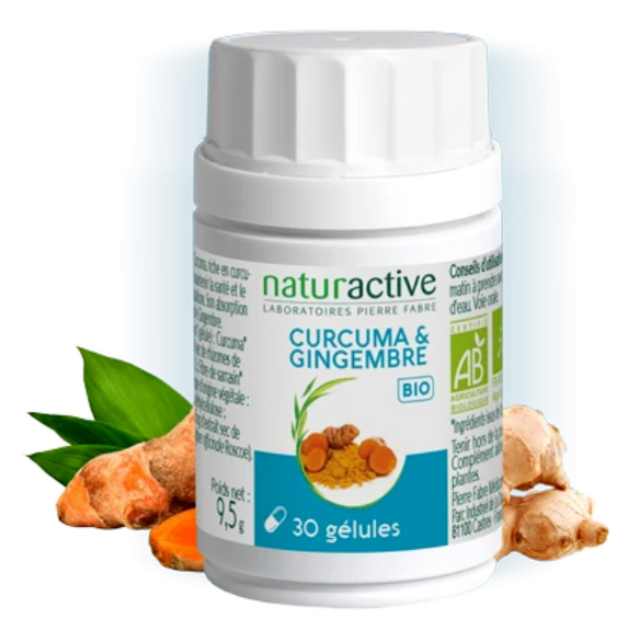 La biodisponibilité des curcuminoïdes peut être améliorée par l’action complémentaire de certaines plantes. C’est pourquoi, Naturactive propose l’association Curcuma bio & Gingembre bio.