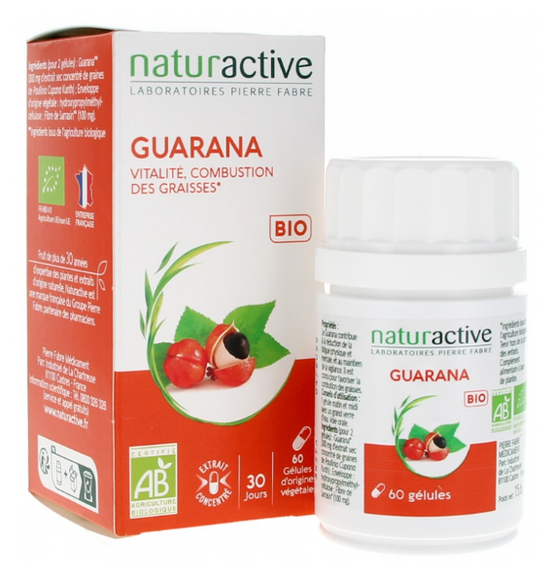 Le Guarana contient de la caféine (entre 3,5 et 6%) ce qui explique ses propriétés stimulantes. Le Guarana contribue à la réduction de la fatigue physique et mentale, et au maintien de la vigilance. Il est également connu pour activer la dépense énergétique de l'organisme et favoriser la combustion des graisses. L'extrait sec concentré de Guarana aide à retrouver énergie et vitalité, et à contrôler son poids en complément de mesures hygiéno-diététiques.