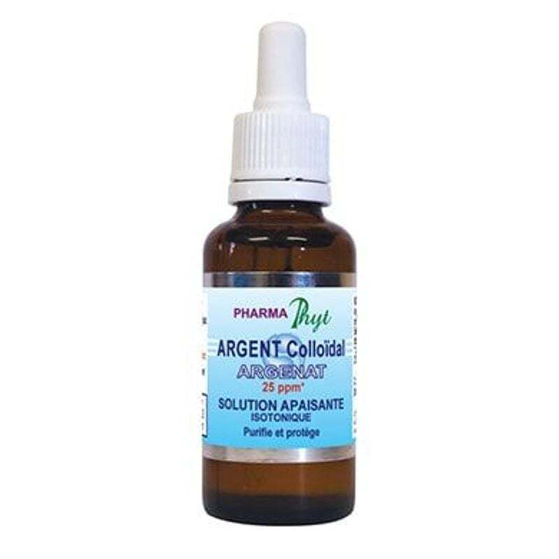 DescriptionUn soin oculaire naturel pour des yeux apaisés et protégésDécouvrez PHARMAPHYT ARGENT yeux, une solution isotonique dargent colloïdal à 25 PPM, spécialement formulée pour lhygiène et le confort des yeux. Sans nanoparticules, ce produit naturel offre une action apaisante et purifiante, idéale pour soulager les irritations, rougeurs, inflammations ou gonflements. Sa formule douce et efficace en fait un allié précieux au quotidien pour préserver la santé de vos yeux. Une solution polyvalente pour une hygiène optimaleGrâce à sa concentration précise de 25 PPM, cette solution dargent colloïdal agit comme un anti-infectieux naturel, neutralisant les bactéries tout en respectant la sensibilité des tissus oculaires. Son format pratique de 30 ml permet une utilisation facile et nomade, que ce soit à la maison ou en déplacement. En plus de son usage dédié à lhygiène oculaire, ce produit peut également être employé pour dautres applications : hygiène buccale, soin des escarres, piqûres, brûlures, petites blessures ou encore prévention des infections urinaires. Une formule respectueuse et efficace PHARMAPHYT ARGENT yeux se distingue par sa composition sans nanoparticules, avec des microparticules dont la taille dépasse 1 nm, garantissant une biodisponibilité optimale et une action ciblée. Sa solution isotonique, proche du pH physiologique, assure une tolérance parfaite pour les yeux sensibles. Un produit naturel, sans additifs agressifs, pour une hygiène douce et une protection durable. Pharmaphyt est une marque engagée dans le développement de solutions naturelles pour le bien-être et lhygiène au quotidien. Spécialisée dans les produits à base dingrédients actifs dorigine naturelle, la marque allie innovation et respect des principes de la phytothérapie pour offrir des soins efficaces et doux. Avec une approche centrée sur la qualité et la sécurité, Pharmaphyt sadresse à ceux qui recherchent des alternatives naturelles pour prendre soin de leur santé et de leur corps.Liste des avantages du produitDécouvrez les avantages de PHARMAPHYT ARGENT Yeux 25 PPM 30 ml : Soulage les irritations oculaires Purifie et apaise les yeux Réduit rougeurs et inflammations Anti-infectieux naturel efficace Sans nanoparticules nocives Biodisponibilité optimaleConseils d'utilisationPour une utilisation optimale de PHARMAPHYT ARGENT yeux 25 PPM, commencez par bien agiter le flacon avant chaque application. Versez quelques gouttes directement dans l'il irrité ou sur une compresse stérile pour un nettoyage doux. Utilisez-le 2 à 3 fois par jour, ou selon les besoins, pour apaiser les rougeurs, inflammations ou irritations. Évitez tout contact avec les lentilles de contact pendant l'application. Ce produit peut également être employé pour d'autres usages externes comme les soins de la peau ou l'hygiène buccale, en respectant les mêmes précautions d'emploi. Conservez-le à l'abri de la lumière et de la chaleur pour préserver son efficacité.CompositionSolution isotonique d'argent colloïdal (Agent purifiant : microparticules d'argent à 25 ppm) - Eau purifiée (Solvant) - Chlorure de sodium (Agent isotonisant).
