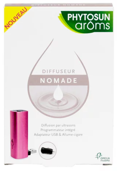 Le diffuseur d'huiles essentielles nomade Phytosun Arôms est utilisé pour la diffusion d'huiles essentielles. Il est équipé d’un système de diffusion par ultrasons, permet une diffusion des huiles essentielles tout en douceur. Il bénéficie d’une taille idéale, d’un adaptateur interchangeable USB et allume-cigare, et peut s’emporter partout. Pour un confort d’utilisation optimal, il est équipé d’un programmateur permettant de choisir l’intervalle de diffusion. Dans les lieux confinés et en présence d’enfants, diffuser par cycle de 10 minutes, avec un intervalle de 45 minutes.