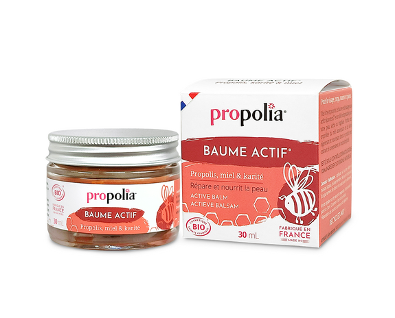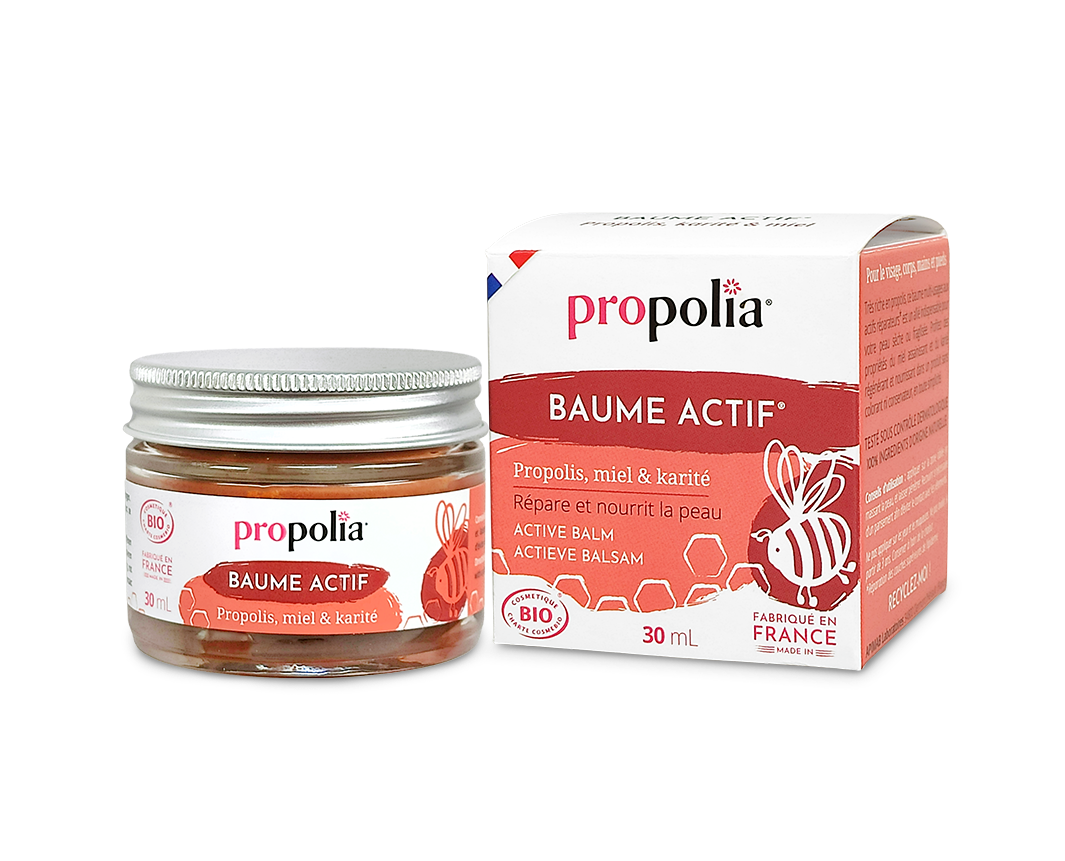 Le Baume Actif multiusage, très fortement dosé en extrait de Propolis (15%), est l’allié indispensable de votre peau sèche ou fragilisée !