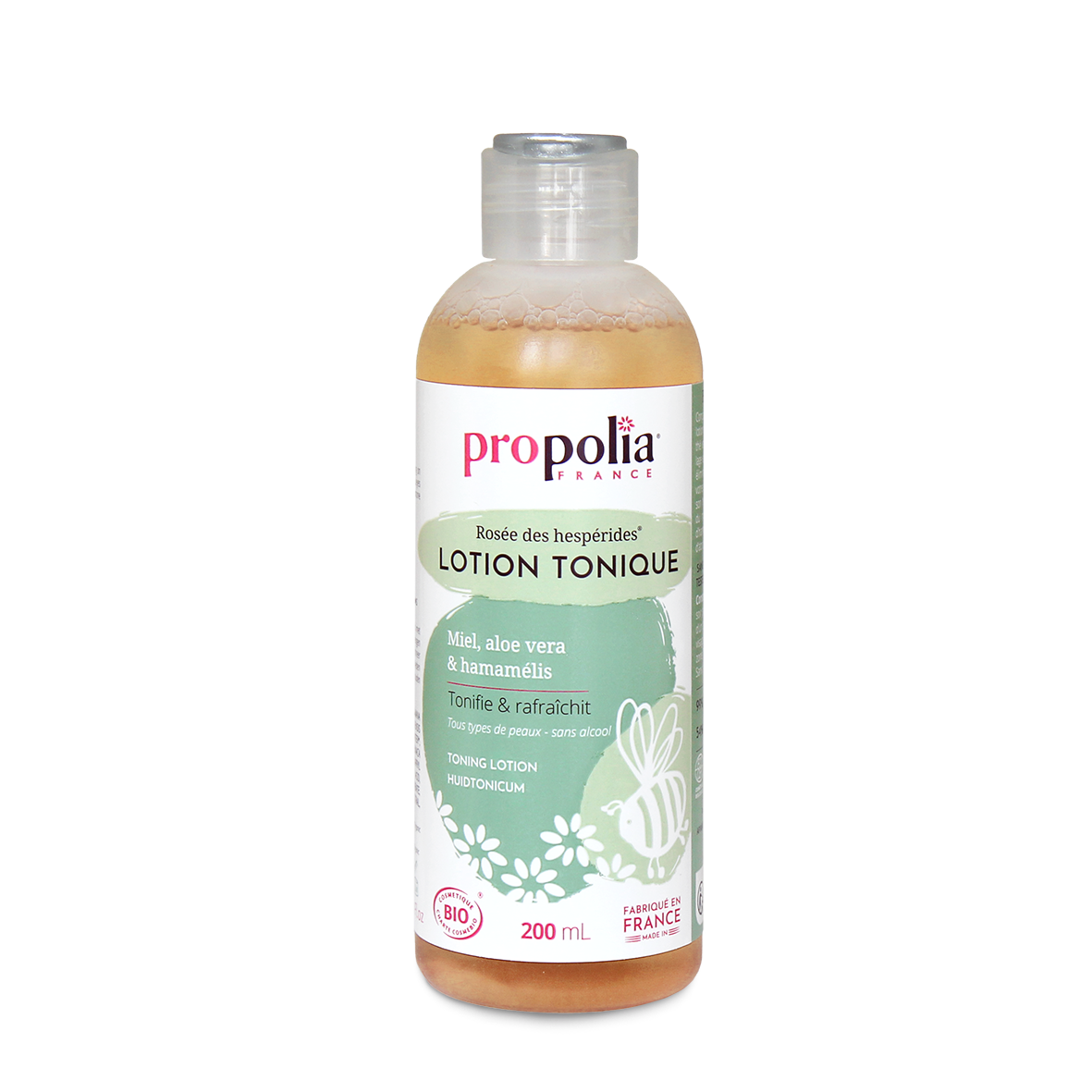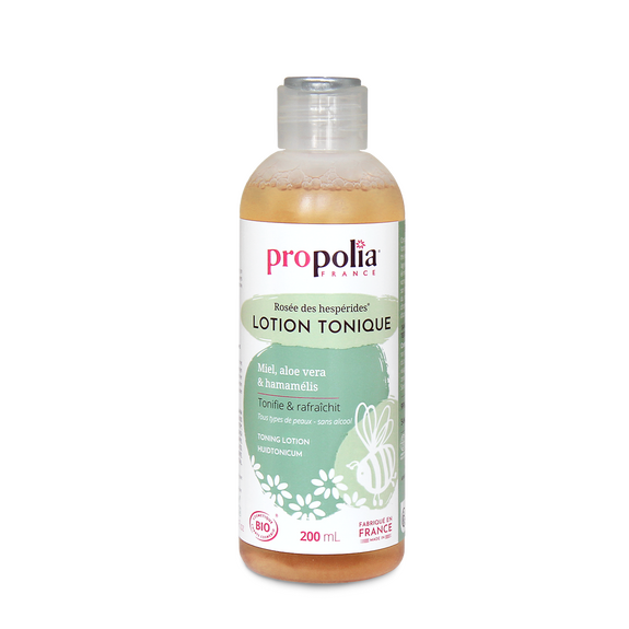 Pour toutes peaux, la Lotion Tonique au léger parfum de thé vert élimine les impuretés, tout en apportant à votre peau les actifs naturels nécessaires à son hydratation et à son éclat. L’association de l’Aloe Vera, des Eaux florales d’Hamamélis et de Camomille, du Miel et de l’Extrait d’Abricot nettoie, adoucit et revitalise votre peau. Elle laissera à votre visage une sensation de fraîcheur idéale pour bien commencer la journée.