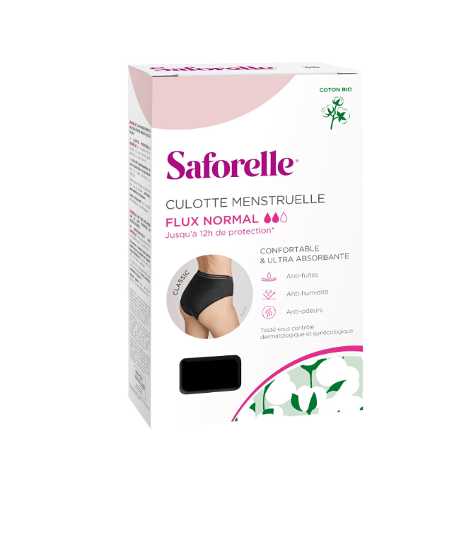 Culotte menstruelle Classic de Saforelle, féminine et confortable, son design tendance allie bien-être et sécurité, elle vous accompagne avec style tout au long de votre cycle.