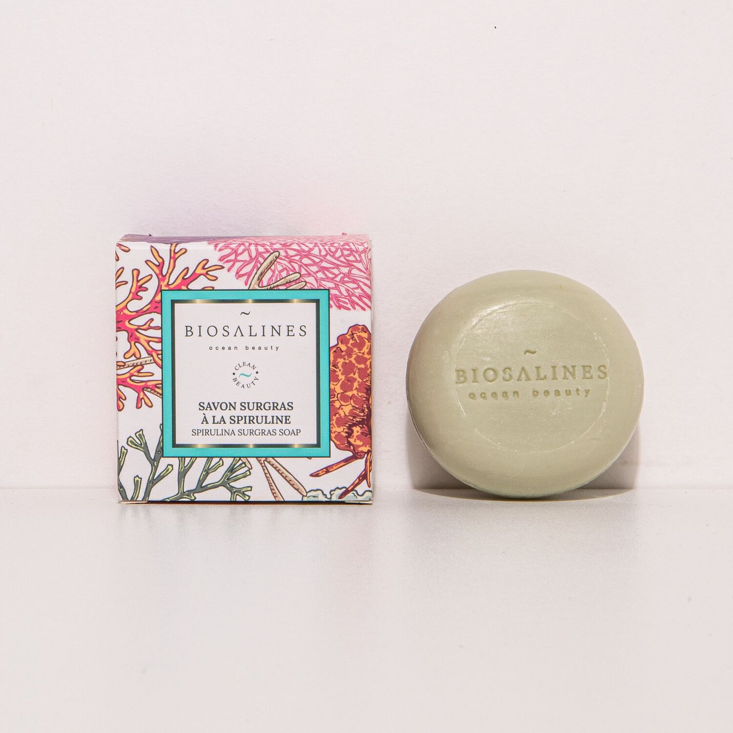 Le Savon Surgras à la Spiruline de Biosalines, enrichi en huiles végétales, se transforme en une mousse soyeuse délicatement parfumée qui nettoie la peau tout en respectant son hydratation naturelle.La spiruline, surnommée, « Lor Bleu » , est une petite algue aux bienfaits reconnues pour la peau. Elle apporte élasticité et souplesse pour une peau naturellement douce.Formule Vegan.Convient à toute la famille dès 3 ans.