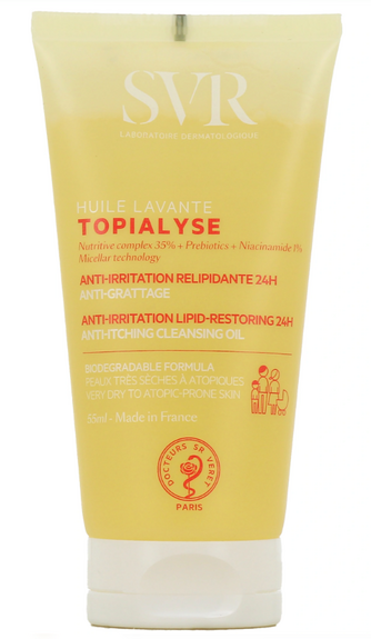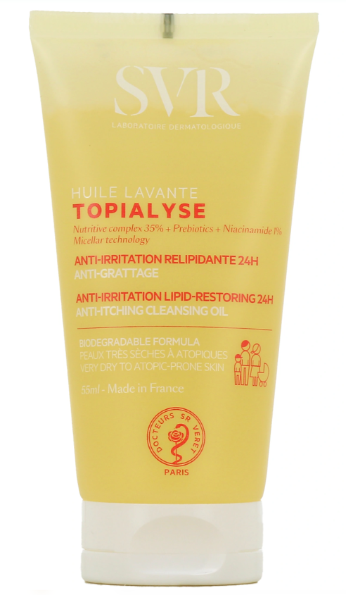 Topialyse Huile Lavante est un véritable soin lavant; le premier geste de votre routine apaisante, anti-irritation, anti-grattage. Cette huile sensorielle riche en actifs relipidants et hydratants nourrit intensément la peau. Elle préserve le film hydrolipidique, protège des agressions extérieures (froid, frottements) et des effets desséchants de l’eau calcaire. Sa texture huile soyeuse et enveloppante préserve l’hydratation pendant 24h pour un confort immédiat et longue durée.