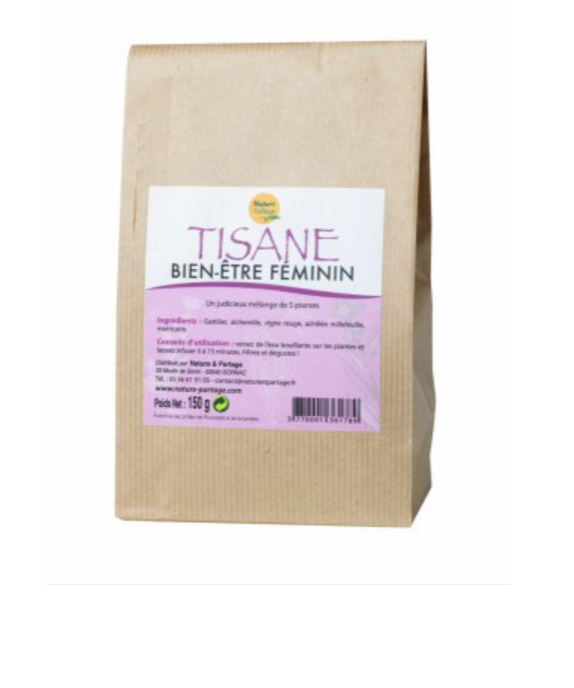 La Tisane Bien-être féminin est un produit 100 % végétal, idéale pour le bien-être de l'organisme féminin.En phytothérapie, l'achillée millefeuille, l'alchémille et le gattilier permettent de réguler le cycle féminin et d'apaiser les douleurs prémenstruelles.