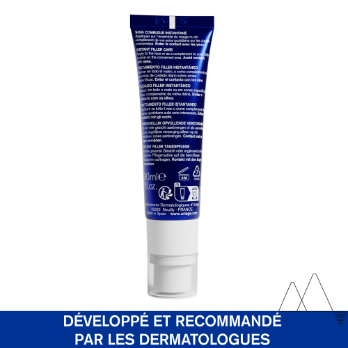 Son acide hyaluronique réticulé cible spécifiquement les rides (patte d'oie, sillons, contour des lèvres...) pour lisser visiblement la surface cutanée. Son agent port-refiner est associé à des poudres soft-focus pour resserrer les pores et flouter visiblement marques, taches et grain de peau irrégulier.