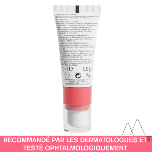 Le Soin yeux frais calmant TOLEDERM CONTROL, à la formule minimaliste, calme instantanément la peau hyper-réactive et fragilisée. Composé d'actifs dermatologiques reconnus, les polyuronides d’algues et le squalane, il atténue les sensations de picotements et de démangeaisons. Sa formule fraîche estompe les cernes et diminue les poches sous les yeux.
