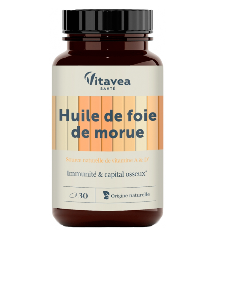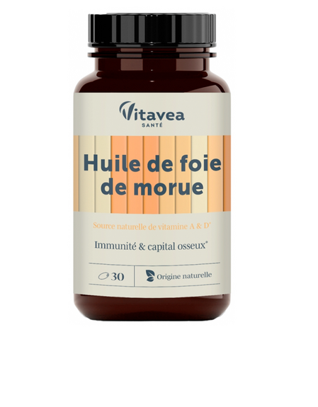 Vitavea Huile de Foie de Morue 30 Capsules est un complément alimentaire qui renforce le système immunitaire, le maintien de la solidité osseuse et le soutien de la santé cardiovasculaire.