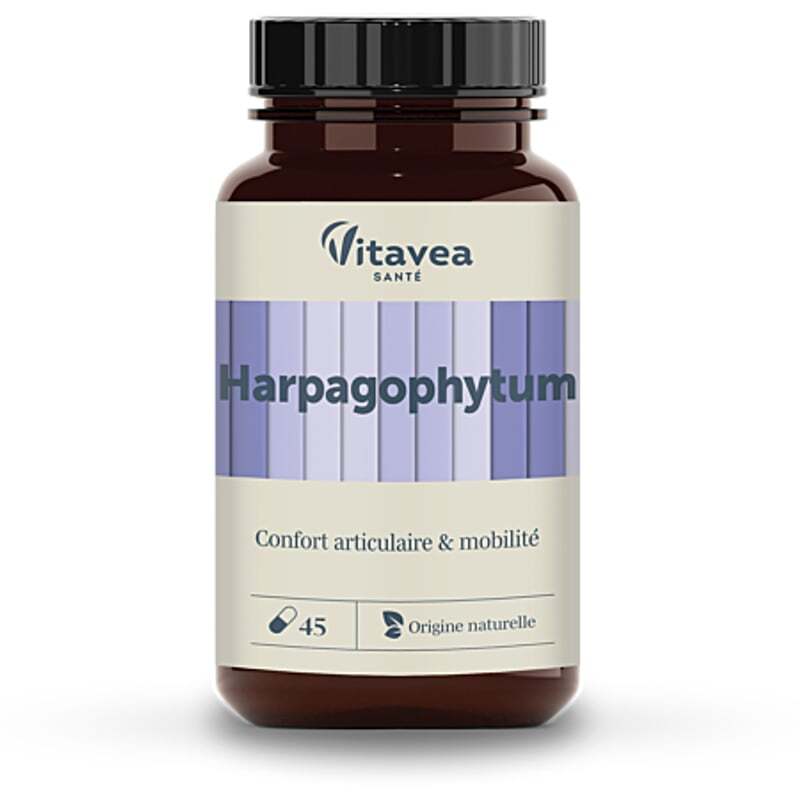 DescriptionUn allié naturel pour des articulations souples et mobiles au quotidienDécouvrez Vitavea Les Essentiels Harpagophytum en gélules, une solution naturelle formulée pour soutenir votre bien-être articulaire. Conçu à base dextrait dharpagophytum, aussi appelé "griffe du diable", ce complément alimentaire est reconnu pour contribuer au maintien du confort, de la souplesse et de la mobilité des articulations. Idéal pour celles et ceux qui souhaitent préserver leur mobilité avec douceur et efficacité. Une formule concentrée pour une action cibléeChaque dose journalière (3 gélules) apporte 540 mg dextrait dharpagophytum, une plante utilisée depuis des siècles pour ses propriétés bénéfiques sur les articulations. Ce format pratique en flacon de 45 gélules permet une cure facile à intégrer dans votre routine quotidienne. À avaler simplement avec un grand verre deau, ces gélules sont conçues pour une assimilation optimale. Fabriqué en France pour une qualité irréprochableCe complément alimentaire est fabriqué en France par Havea Pharma, garantissant des normes de qualité strictes et une traçabilité rigoureuse. Son format compact et son flacon pratique en font un produit facile à emporter partout, que ce soit au travail, en voyage ou lors de vos activités sportives. Vitavea, marque engagée dans le bien-être naturel, propose des compléments alimentaires conçus pour accompagner votre santé au quotidien. Avec une expertise reconnue dans les formulations à base de plantes, Vitavea allie tradition et innovation pour offrir des produits sûrs, efficaces et fabriqués en France. Leur gamme "Les Essentiels" met en avant des actifs naturels soigneusement sélectionnés pour répondre aux besoins spécifiques de chacun.Liste des avantages du produitSoulage les articulations sensibles Favorise la mobilité articulaire Maintient la souplesse naturelle Formule à l'harpagophytum naturel Pratique en gélules faciles à avaler Fabriqué en FranceConseils d'utilisationPour une utilisation optimale des gélules Vitavea Les Essentiels Harpagophytum, prenez 3 gélules par jour avec un grand verre deau, de préférence au cours des repas. Ce complément alimentaire à base dextrait dharpagophytum (540 mg par dose journalière) est conçu pour soutenir le confort, la souplesse et la mobilité articulaire. Respectez la posologie indiquée et nhésitez pas à associer cette cure à une alimentation équilibrée et à un mode de vie actif pour des résultats optimaux.CompositionExtrait sec d'harpagophytum (Harpagophytum procumbens) (racine) - Gélatine (ENVELOPPE DE LA GÉLULE) - Agent denrobage : hydroxypropylméthylcellulose - Stabilisant : glycérine - Eau purifiée - Antioxydant : extrait de romarin (Rosmarinus officinalis) (feuille)