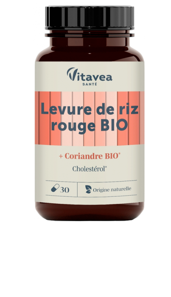 Vitavea Levure de Riz Rouge Bio 30 Gélules contient des monacolines bénéfiques pour la régulation du cholestérol.