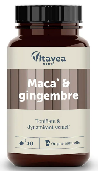 Vitavea Maca & Gingembre Tonifiant & Dynamisant Sexuel 40 gélules favorise la vitalité, le bien-être physique et une vie sexuelle harmonieuse.